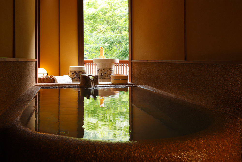 Facilities / Two open-air baths (Iwato and Keikoku), an indoor bath (Kajika no yu), and two open-air baths (Take no Yu/Usagi and Tsuki)